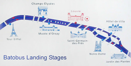 The Paris Batobus River Bus hop-on hop-off service is aimed at tourists, taking advantage of the fact that many of the biggest visitor attractions of Paris are next to or close to the River Seine.